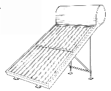 Mediante los colectores solares podemos conseguir agua caliente sanitaria, calentar el agua de piscinas, duchas deportivas y hasta calefacción, siempre que esa zona exista una suficiente radiación solar. El agua caliente generada en el panel es almacenada en un acumulador que puede ir incorporado al mismo (como en la figura de la derecha) o bien instalado en el exterior. Este tipo de instalaciones pueden tener un elevado nivel tecnológico, llevando incorporados reguladores y mezcladores para conseguir una temperatura constante en el agua a consumir. |